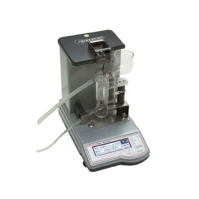 全自动酒精度测试仪,用酒中乙醇体积比或总干提取物衡量。LCD 显示屏上和直接读取酒精度(0.13 to99.98% ASV), 同时可显示温度、20℃下的密度等参数,全防水键盘设计。